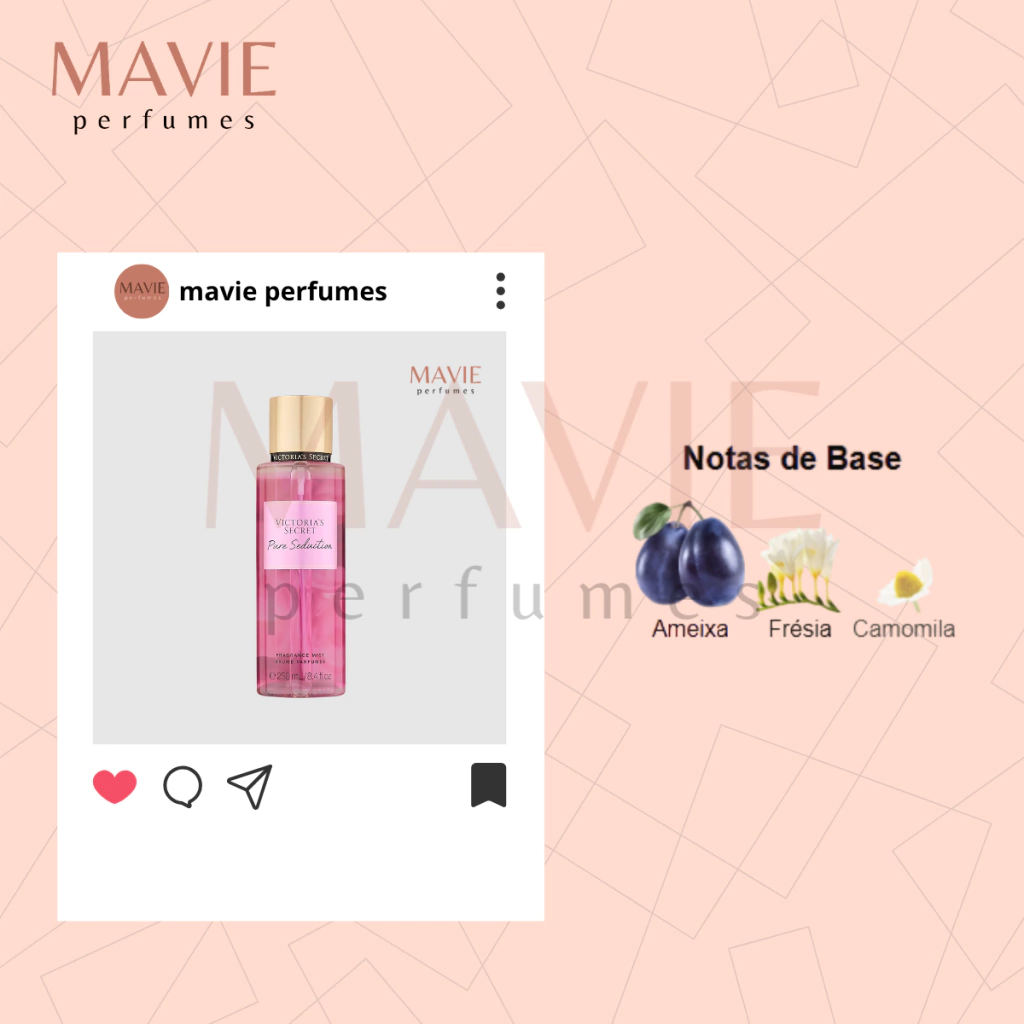 Pure Seduction da Victoria’s Secret é uma fragrância ousada, doce e extremamente sedutora. Com a deliciosa mistura de ameixa vermelha suculenta e frésia doce, esse body mist entrega um aroma frutado-floral marcante, envolvente e feminino. É perfeito para quem quer se destacar e deixar um rastro irresistível por onde passa. Ideal para momentos de romance ou para quando você quer simplesmente se sentir poderosa.