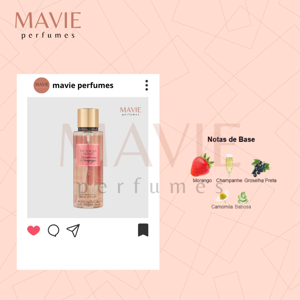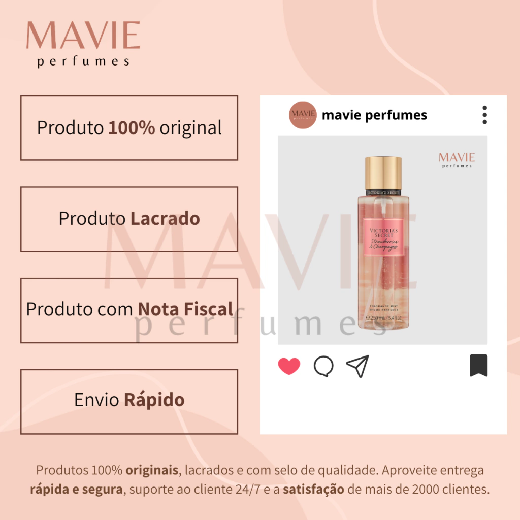Strawberries & Champagne da Victoria’s Secret é uma fragrância doce, sofisticada e levemente efervescente. Une a suculência das morangos frescos com o toque festivo e elegante do champagne rosé, resultando em um aroma romântico, glamouroso e levemente sensual. Perfeito para quem ama fragrâncias frutadas com um toque refinado, é ideal tanto para o dia quanto para ocasiões especiais à noite.