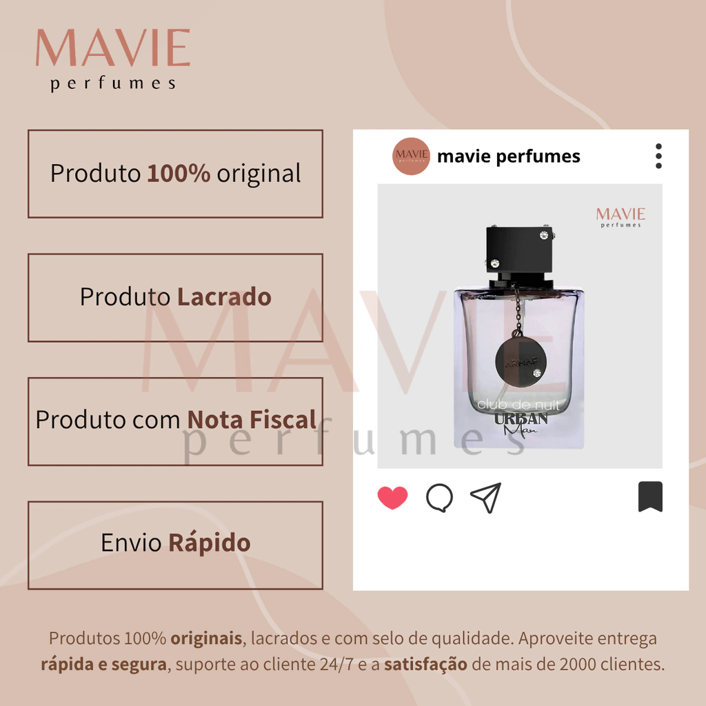 A Mavie Perfumes é uma boutique confiável, dedicada a oferecer fragrâncias de alta qualidade com um serviço de entrega seguro e eficiente. Compre com confiança e descubra o luxo de nossos perfumes.