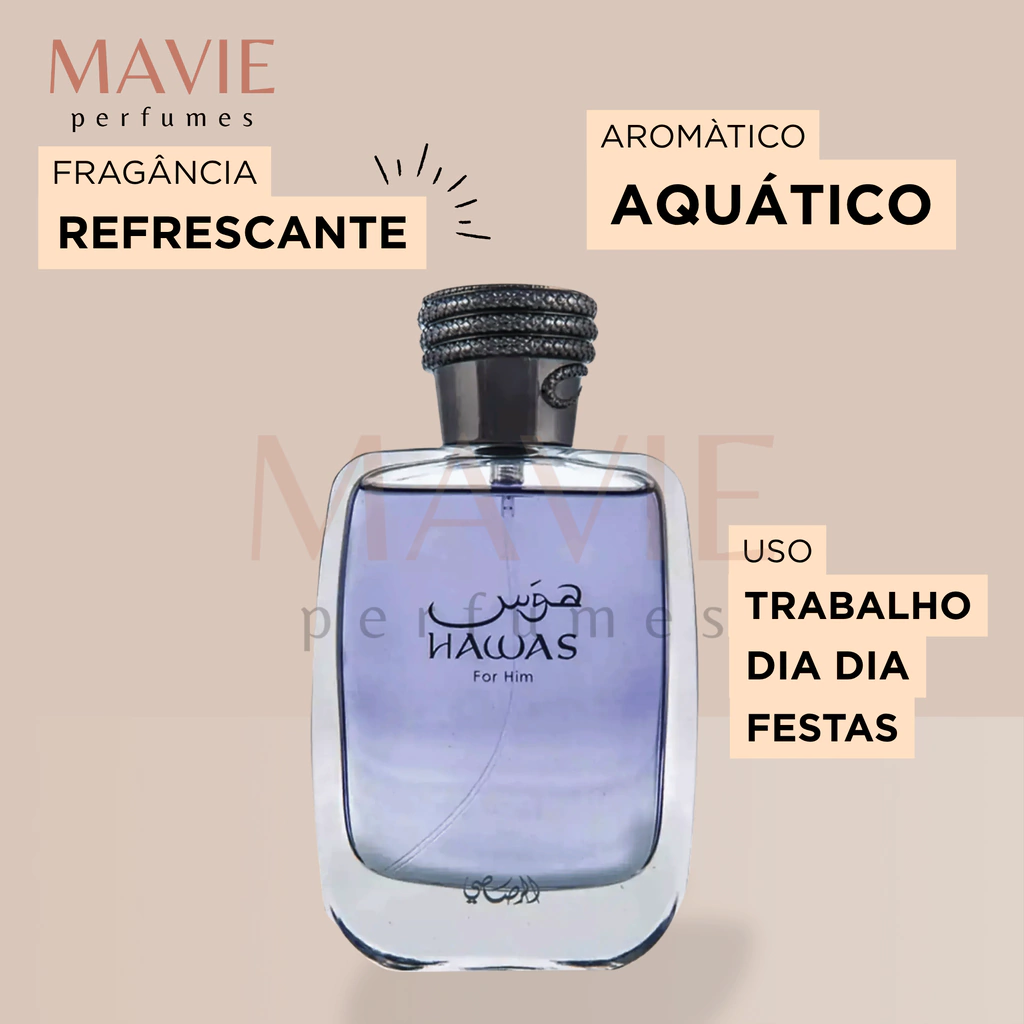Um perfume vibrante e sedutor que combina modernidade com intensidade, perfeito para o homem confiante e aventureiro. Hawas for Him mistura frescor aquático com especiarias exóticas e um fundo amadeirado envolvente, criando uma fragrância irresistível que se destaca em qualquer ocasião.
