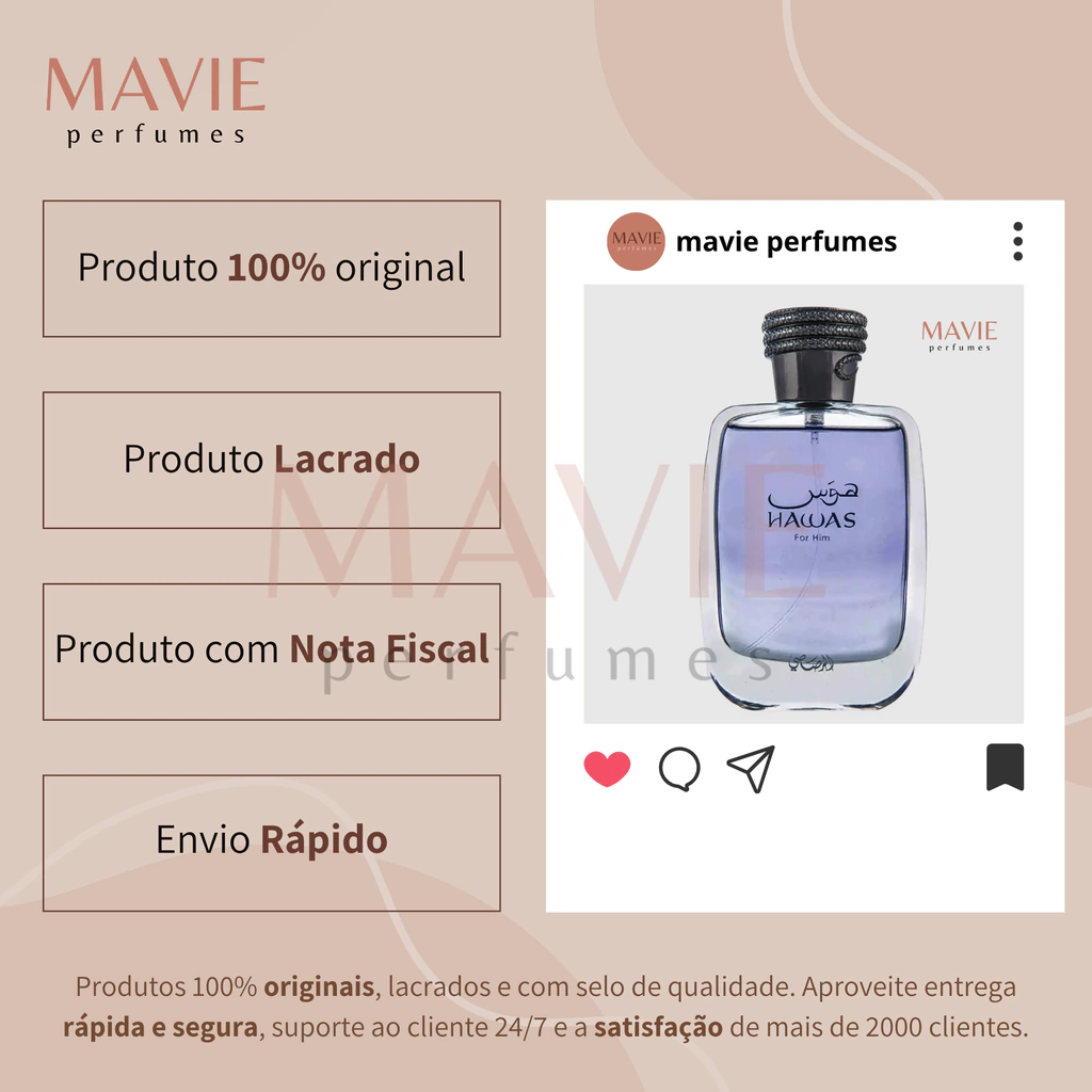 A Mavie Perfumes é uma boutique confiável, dedicada a oferecer fragrâncias de alta qualidade com um serviço de entrega seguro e eficiente. Compre com confiança e descubra o luxo de nossos perfumes.