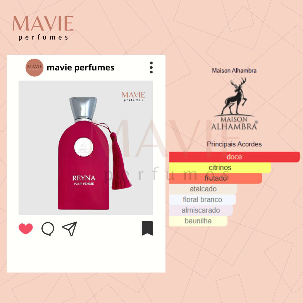 Reyna é uma fragrância feminina da família olfativa floral frutada, ideal para mulheres que apreciam perfumes doces, sofisticados e envolventes.