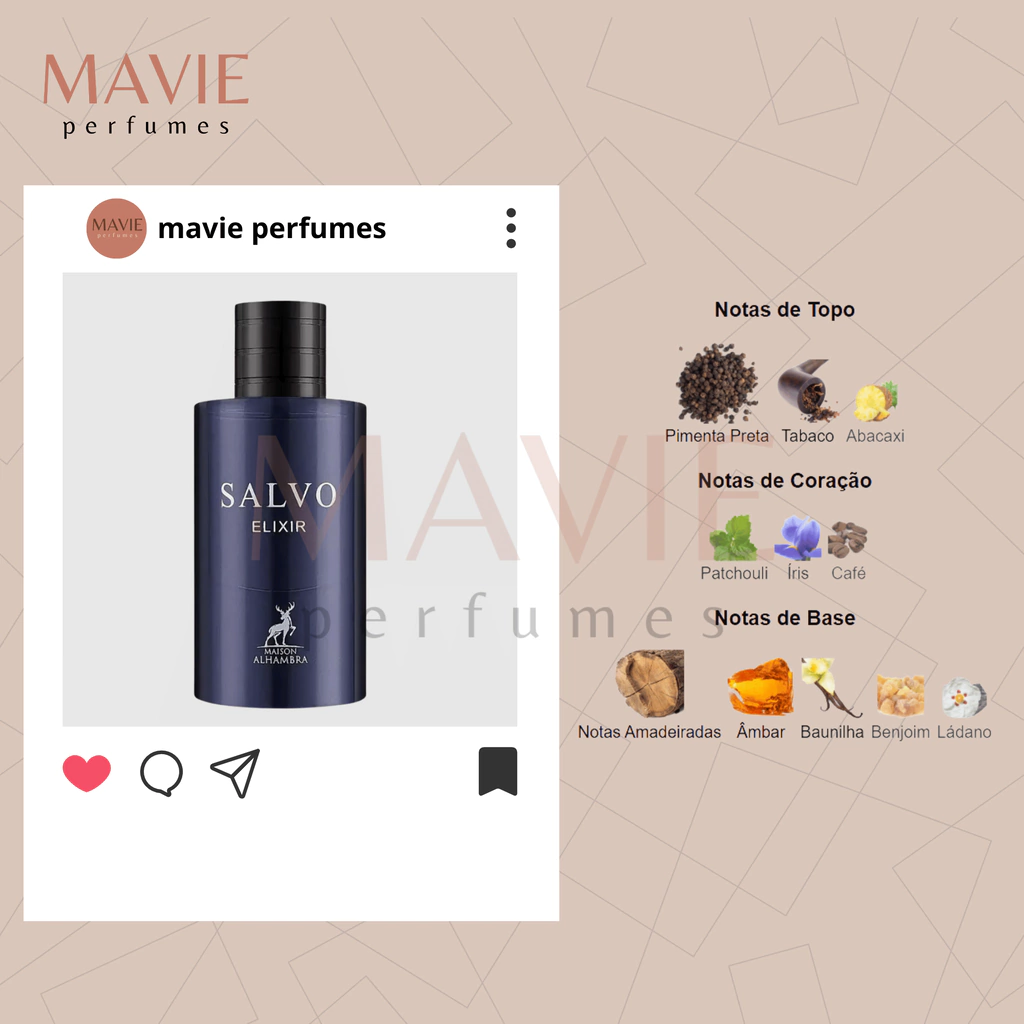 Salvo Elixir é uma explosão intensa e magnética de especiarias e madeiras quentes, que exala poder, sofisticação e presença marcante.