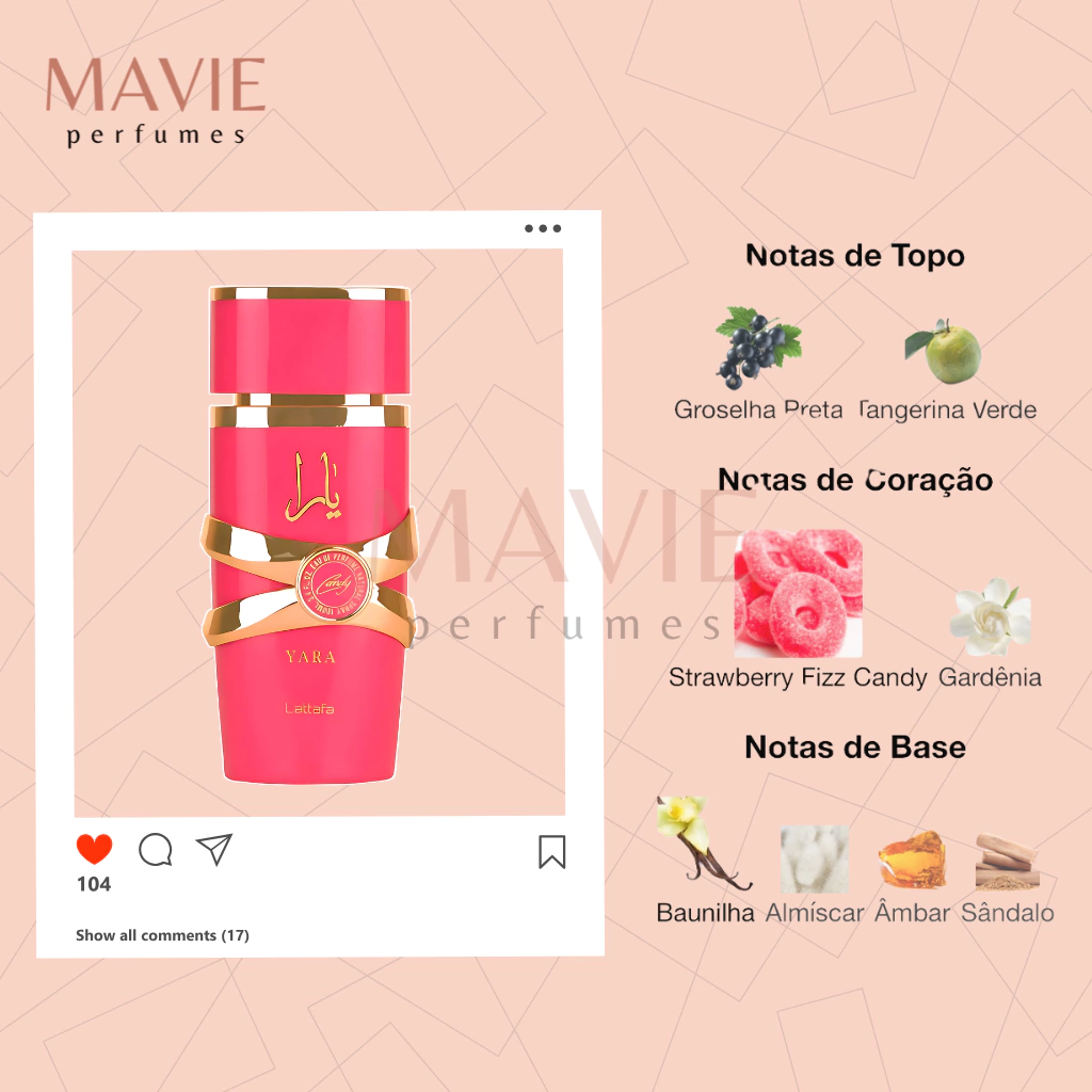 Yara Candy é uma fragrância feminina pertencente à família olfativa Floral Frutado Gourmet, combina notas doces e sofisticadas, tornando-se uma opção marcante tanto para o uso diário quanto para ocasiões especiais.