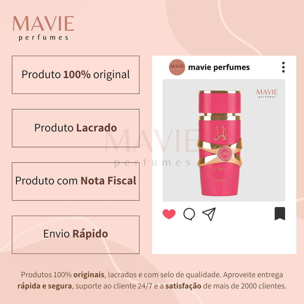 A Mavie Perfumes é uma boutique confiável, dedicada a oferecer fragrâncias de alta qualidade com um serviço de entrega seguro e eficiente. Compre com confiança e descubra o luxo de nossos perfumes.