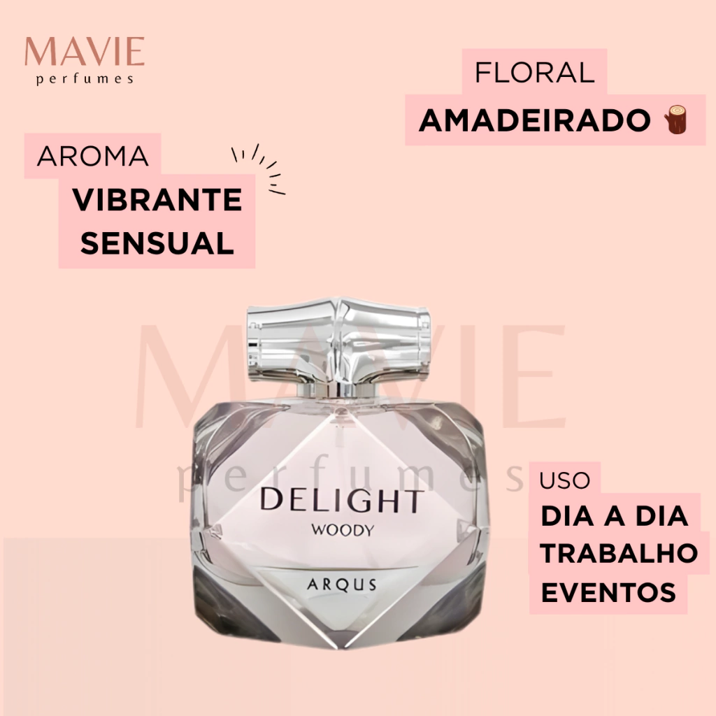 Com sua mistura equilibrada entre flores delicadas e madeiras quentes, Delight Woody traz uma presença marcante e sofisticada, perfeita tanto para o dia quanto para a noite — um perfume que transmite poder com sutileza e deixa uma assinatura inesquecível.