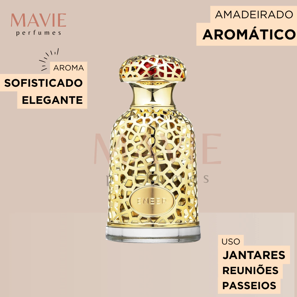 Emeer é uma fragrância sofisticada que combina frescor cítrico e notas aromáticas com uma base amadeirada e resinoso, exalando elegância e presença a cada instante.