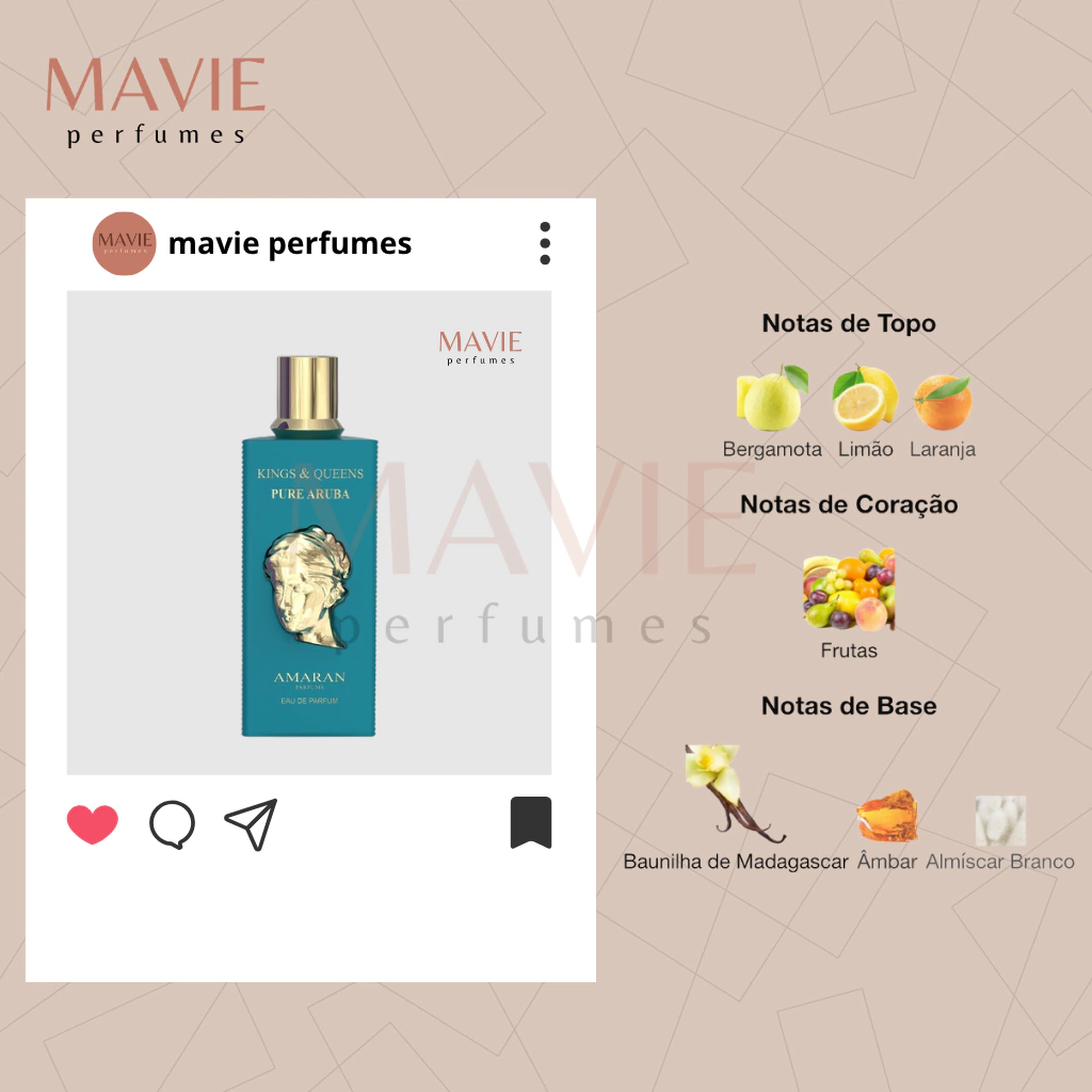 O Kings & Queens Pure Aruba é um Eau de Parfum unissex que combina frescor cítrico, doçura frutada e uma base envolvente de baunilha e almíscar. Lançado em 2023, é inspirado nas paisagens tropicais e na sofisticação da ilha de Aruba.
