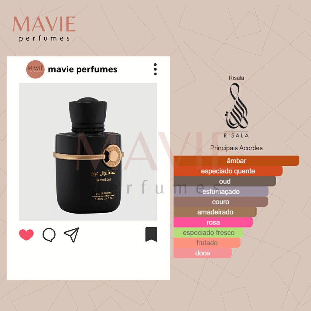 Sensual Oud — uma fusão hipnotizante de açafrão exótico, frutas suculentas e madeira oud intensa. A fragrância se desliza com calor especiado, coração floral-ésfumaçado e base resinosa, perfeita para noites marcantes.